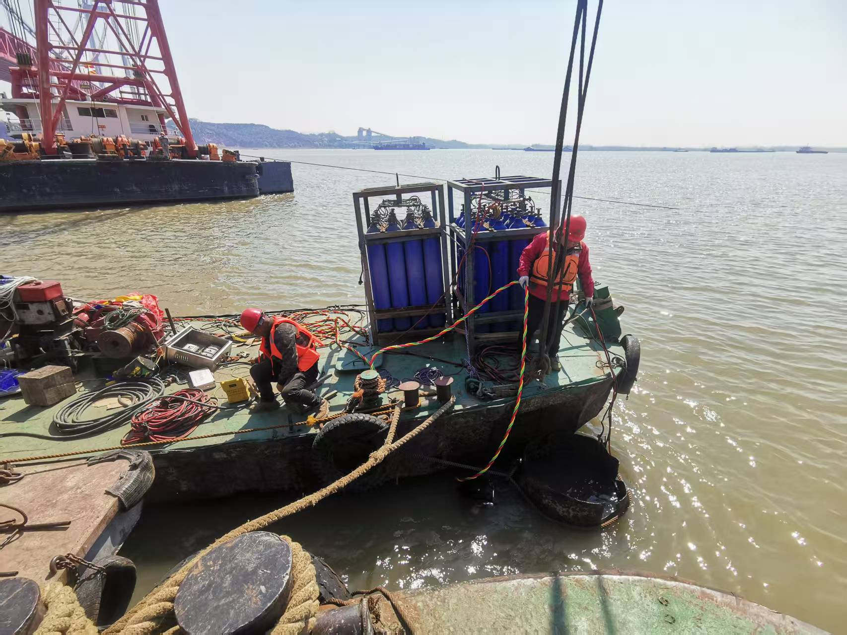 水下切割工程主要有水下切割吸沙管、水下切割采砂管吊装、水下切割拱机头、水下切割钢围堰、水下切割钢管桩、水下切割钢筋笼、水下切割钢护筒、水下切割灌注桩等。水下作业公司 水下切割安全工作的一个重要特点是:需要进行大量、多方面的准备工作,一般包括以下几个方面: